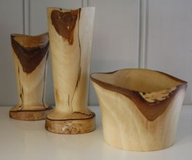 Min man Peter svarvar i sin verkstad vaser, skålar, små behållare och ljusstakar. Förutom träslag som björk, al och en använder han också gärna bok från vår nordtyska hemtrakt, som är relativt ovanlig här i Sverige.